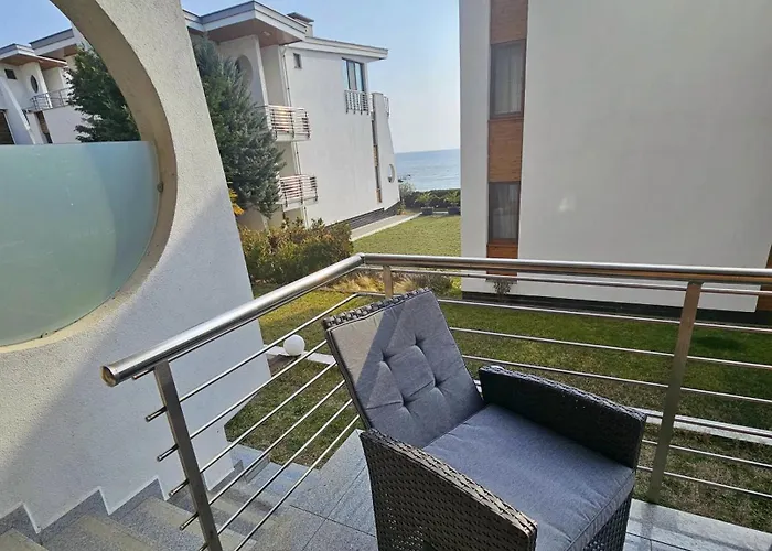 Двустаен Апартамент Поморие Apartment offers guests a balcony and a terrace and overlooks the private pool. To ensure your comfort, a bathtub, a separate toilet, and a shower are provided at the property.